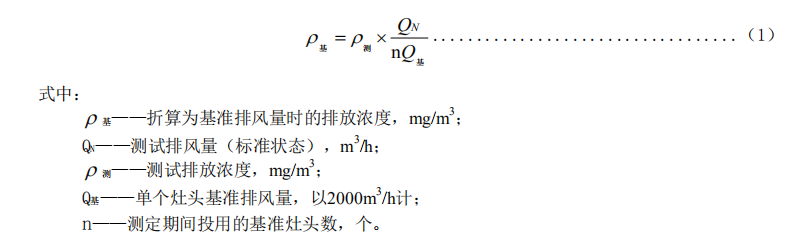 獲得油煙、顆粒物和非甲烷總烴的測試排放濃度后,應將測試排放濃度折算為基準風量時的排放濃