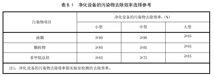 B.1 在新建或更換污染物凈化設備時,餐飲服務單位應根據其規模大小、排放的主要污染物種類選擇