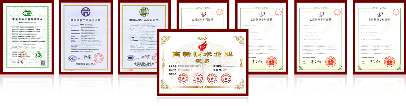 雄厚的企業(yè)實力和科學完善的質量體系是產品品質的保證!新興榮福先后取得:CEP環(huán)保認證、中國節(jié)能產品認證、中國環(huán)保產品認證、北京市高新技術企業(yè)認證和若干新型專利證書。+了解更多